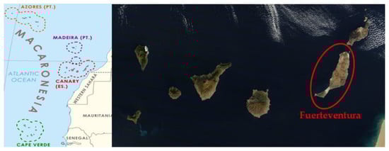 - Wikipedia. Available online: https://es.wikipedia.org/wiki/Fuerteventura (accessed on 7 July 2023).