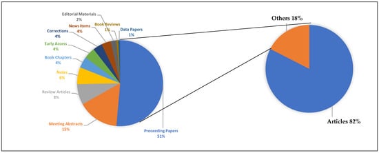 On average, each article is presented in two or three categories and sometimes, it is presented in four. There are four exceptions, four articles that were present in five different categories: the study of Lee et al. [] is present in the categories Archaeology; Art; Chemistry, Applied; Chemistry, Analytical; Spectroscopy; the study of Bajaj et al. [] is present in the categories Biochemical Research Methods; Biochemistry & Molecular Biology; Biotechnology & Applied Microbiology; Green & Sustainable Science & Technology; Energy & Fuels categories; the study of Swiechowski et al. [] is present in the categories Chemistry, Physical; Materials Science, Multidisciplinary; Metallurgy & Metallurgical Engineering; Physics, Applied; Physics, Condensed Matter categories; and the study of Chen and Sun [] is present in the categories Computer Science, Interdisciplinary Applications; Environmental Sciences; Geography, Physical; Remote Sensing; Telecommunications categories.