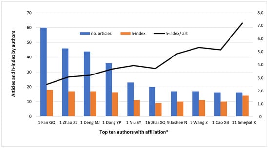 - The first ten authors in terms of articles were almost all from institutions in the People’s Republic of China, except for no. 7, from the USA, and no. 10 from the Czech Republic.