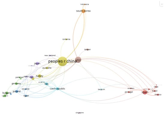 Most authors who have published articles about paulownia, belong to the People’s Republic of China. In addition, there is a wide exchange of collaborative groups among countries all over the world, except for Singapore (Figure 6). In Singapore, only one institution deals with paulownia that works independently. The published articles of this country were all by the same group of authors and were on the same topic, i.e., in vitro culture.