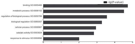 Gene Ontology (GO) functional classifications and enrichment analysis of individual DEGs were performed using the WEGO website (https://wego.genomics.cn, as accessed on 12 October 2021). The p-value was determined using the Pearson Chi-Square test. Significant enrichment was defined as a p-value threshold of less than 0.05 [].