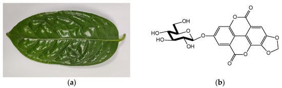 - Kuba-Miyara, M.; Agarie, K.; Sakima, R.; Imamura, S.; Tsuha, K.; Yasumoto, T.; Gima, S.; Matsuzaki, G.; Ikehara, T. Inhibitory Effects of an Ellagic Acid Glucoside, Okicamelliaside, on Antigen-Mediated Degranulation in Rat Basophilic Leukemia RBL-2H3 Cells and Passive Cutaneous Anaphylaxis Reaction in Mice. Int. Immunopharmacol. 2012, 12, 675–681. [Google Scholar] [CrossRef] [PubMed]