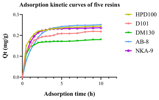 3.1. Screening of Optimal Resin