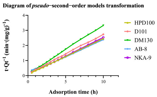 3.1.1. The Adsorption Capacity and Rate of Five Resins