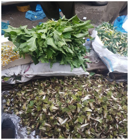 Iraqi Kurdistan has been the arena of some studies on WFPs in recent years, since Kurdish foraging practices are considered to be among the most vibrant and resilient ones in the world [21,23,24]. The turbulences of the past decades following the fall of Saddam Hussain’s regime and especially those linked to areas which have been recently controlled by the so-called “the Islamic State” have increased the uncertainty in terms of food security. WFPs and especially wild vegetables during the spring are prominent in the local Kurdish foodscapes, making Kurdistan possibly the most iconic hotspot of wild vegetable diversity we have in Eurasia. However, the custom of knowing and gathering wild edible plants is mainly retained by elderly people, while young community members have often lost this heritage, despite local markets still offering a remarkable spectrum of diverse species to urban populations.