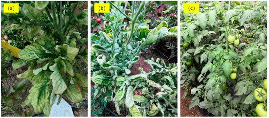 The WUEL performance in winter in this study is in line with the findings in the literature, in which optimal temperature is 20–30 °C in day time for higher pollen germination and fruit set and finally good yield of tomato [63], whereas temperature reaching 35 °C and higher will present a major restriction on physiological and biochemical development and consequently results in fruit yield reduction [18,19]. In summer, the threshold for heat stress to tomato crops could be a little higher, mainly because tomato plants have adapted to this high-temperature condition. However, long periods of high temperatures is harmful to tomato growth. In August, 2019, the mean daily maximum temperature was 38.9 °C, which caused the tomato yellow leaf curl virus disease and small and curl leaves by heat shock (Figure 2), and consequently resulted in much low Pn and E (Figure 3b and Figure 4b). This is the reason why the tomato yield was only 10.8 ton ha−1 (Table 1) and is not planted in the summer season by most farmers in North China.