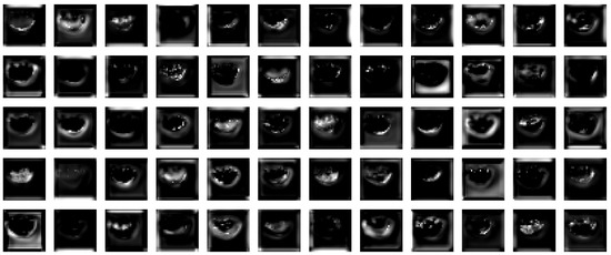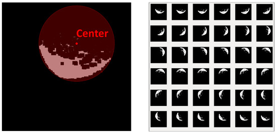 The details of the rotation and the working criteria can be described as follows. First, the center of rotation is the center of the labeled circle. Second, the object of rotation is the pixel with the pixel value of 255 in the original image. Third, the rotation angle interval is 10°. The purpose of the third step is to train the neural network to learn richer features, so the rotation angle interval was set relatively small. The image data after rotation is shown in Figure 5.