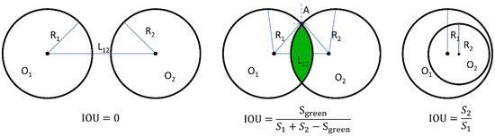 For a single prediction circle, the distance error of the center of the circle can effectively evaluate the accuracy of the center prediction, while the radius error of the circle can effectively evaluate the accuracy of the radius prediction. However, the center error and radius error cannot directly reflect the degree of overlap of the two circles. Inspired by the classical IoU, we propose the OIoU. As shown in Figure 9, the OIoU is the ratio of the area of the intersection of two circles to the union of the areas of two circles. The OIoU can intuitively reflect the coincidence of the predicted circle with the ground truth circle, which is defined as follows: