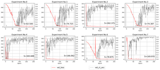 To analyze the influence of several operations on the model training process and model accuracy, we visualize the accuracy and loss of the model on the validation set during the training in Figure 12. In addition, in order to directly show the performance of center prediction on the validation set in each group of experiments, we used the area S of the curve and the X axis of the coordinate system, which is defined as: