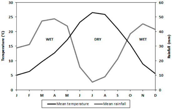 Climogram of the area based on climate historical data from 2001 to 2020.