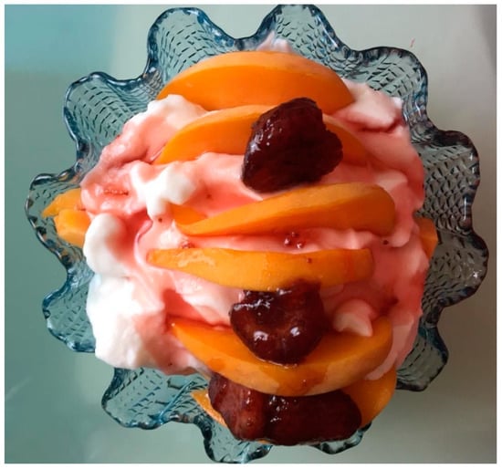 Hogweed gelo with percoca peach and wild strawberries in syrup. Picture and recipe by Eleonora Matarrese. The full recipe is available in the Supplementary Materials.
