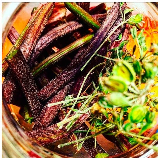Hogweed’s fresh leaves can replace both parsley and celery, as happens with Ligusticum mutellina, while dried leaves can be used as tea. Its seeds, with an intensely aromatic flavour, can be mixed with flour to prepare sweets and bread and in the preparation of some kinds of cheese, as with Carum carvi. They give a particular touch to meat dishes (especially pork), and they can also be used to prepare the well-known kúmmel liqueur, aromatic and digestive. Dried leaves of hogweed can also be used as a new spice colourant in culinary preparations, as with Crithmum maritimum L. [29,30].