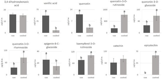 - Lima, G.P.P.; Costa, S.M.; de Almeida Monaco, K.; Rodrigues, U.M.; Fernandez, R.M.; Correa, C.R.; Vianello, F.; Cisneros-Zevallos, L.; Minatel, I.O. Cooking processes increase bioactive compounds in organic and conventional green beans. Int. J. Food Sci. Nutr. 2017, 68, 919–930. [Google Scholar] [CrossRef]