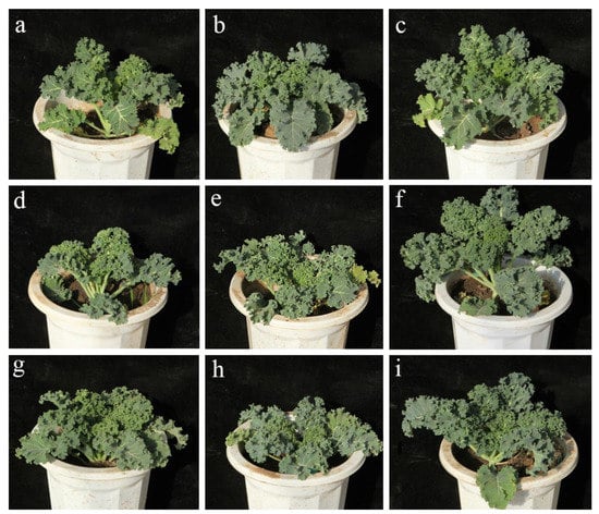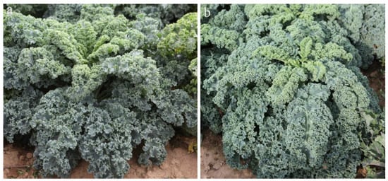 Kale (Brassica oleracea var. acephala) belongs to the Brassicaceae family with both edible and ornamental properties originating in the Mediterranean area. Edible leaf-vegetable kale represented by the curly kale variety, with dark green and curled leaves, has a long planting history in Europe [1]. Because of its wide adaptability, high healthcare value, and cold tolerance, the cultivation and consumption of edible kale varieties are greatly expanding all over the world [2]. Relevant studies have demonstrated that edible-type kale possesses a high nutritional value, rich in nutritional components, such as protein, fiber, antioxidants, calcium, and vitamins C and K [3,4,5]. Because it contains more vitamins and dietary fiber than Brassica and other vegetables, it has gained great popularity as a ‘superfood’ [2]. Even more to the point, whether in salads or smoothies, juicing, dried chips, or stews, the culinary uses of edible kale are almost endless [6]. The worldwide popularity of edible leafy kale has led to a surge in demand, prompting breeders to develop landraces suitable for local specific conditions [2]. Thus, the breeding of improved varieties and the cultivation of new varieties are of great significance to edible leafy kale.