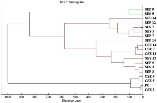 A matrix α-Cyano-4-hydroxycinnamic acid matrix (10 mg/mL) was applied to the dried target plate. MALDI-TOF MicroFlex (Bruker Daltonics) was used for the analysis of biofilm protein spectra. Spectra in the range of mass to charge ratio 200–2000 were recorded in the linear and positive mode. The protein spectra were obtained, and the similarities of the spectra were used to generate the standard global spectrum (MSP). Nineteen MSP were generated from the spectra with MALDI Biotyper 3.0 and were grouped into dendrograms using Euclidean distance [