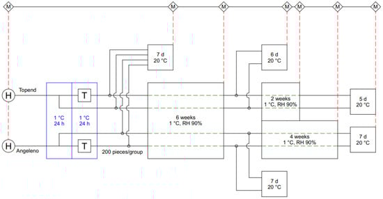 The measurement procedure followed Nguyen et al. [15] and Baranyai et al. [16]. Ethylene and CO2 production, flesh firmness, total soluble solid content, and decay were determined at harvest (0 d), after cold storage and subsequent simulated shelf-life storage. The measurements were conducted at 20 °C. Since ethylene and CO2 production depend on temperature, samples were kept at 20 °C for 1 d after being withdrawn from cold storage.