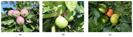 Among fresh fruits, apples are the most frequently consumed, being recognized as a rich source of carbohydrates, vitamins, minerals, fibers, pectins and different classes of polyphenols, all of which contribute to improving the health of the human body [8,9,10,11]. The relative content of different chemical compounds in a fruit, and the fruit’s nutritional value, depends on its genotype, the structure of the tissues, the ripening of the fruit, the pedoclimatic conditions and the culture technology applied, but also on the conditions of harvesting and storing it [12,13,14,15,16,17,18,19]. Old varieties and local populations come with a series of deficiencies regarding character variability, high growth vigor, and sometimes in fruit appearance or sensitivity to particular diseases or pests. However, many researchers consider that these deficiencies can be mitigated, and this is why the existing apple germplasm deserves renewed attention and to be thoroughly studied [20,21,22,23].