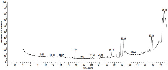 GC–MS chromatogram of Albizia lebbeck stem bark extract.