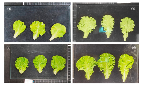 - Son, K.H.; Oh, M.M. Growth, photosynthetic and antioxidant parameters of two lettuce cultivars as affected by red, green, and blue light-emitting diodes. Hortic. Environ. Biotechnol. 2015, 56, 639–653. [Google Scholar] [CrossRef]
