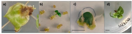 - Forti, C.; Barberini, S.; Laura, M.; Ciorba, R.; Mascarello, C.; Giovannini, A.; Ruffoni, B.; Savona, M. Messa a punto di protocolli di rigenerazione in vitro in Ocimum basilicum cv FT Italiko, finalizzati al miglioramento genetico via genome editing. In Proceedings of the V Convegno Nazionale Sulla Micropropagazione: Un Incontro Tra Gli Operatori Di Settore E Della Ricerca, Bari, Italy, 12–14 October 2022; Atti Giornate Scientifiche SOI: Bari, Italy, 2022. submitted. [Google Scholar]