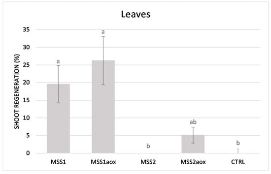| Explant Type | Medium | Shoot Regeneration (%) | Mean n. of Shoots per Responsive Explants |