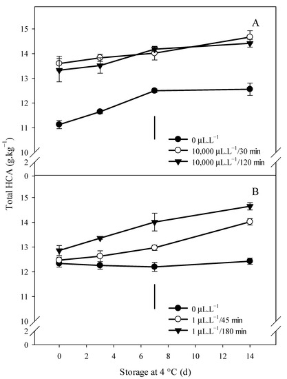 - Duarte-Sierra, A.; Forney, C.F.; Thomas, M.; Angers, P.; Arul, J. Phytochemical Enhancement in Broccoli Florets after Harvest by Controlled Doses of Ozone. Foods 2022, 11, 2195. [Google Scholar] [CrossRef]