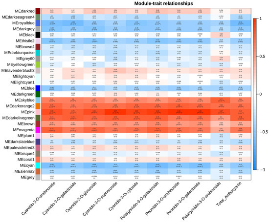 3.3. WGCNA of Anthocyanin Content and Transcriptome Data
