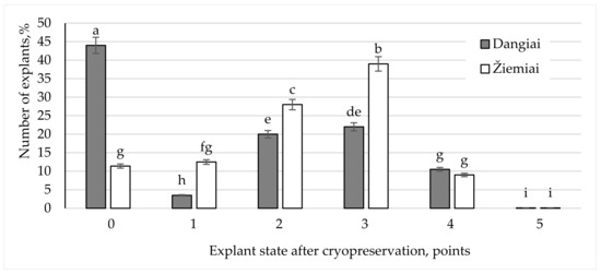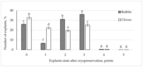 Survival and State of Garlic Explants of Two Lithuanian Cultivars after Cryopreservation
