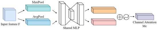 where represents the sigmoid functions, and ; and are the weights of the shared MLP by the two inputs; and are the average and max pooling operations on the feature map, respectively.