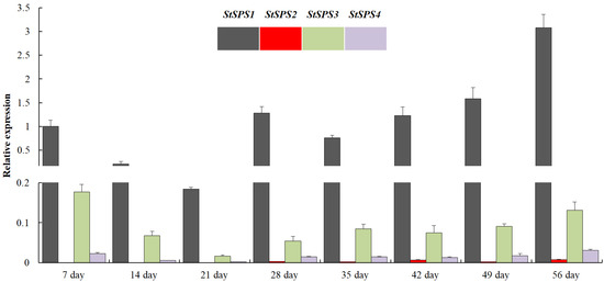 Expression of StSPS family genes in bud eyes tissue during tuber storage (qRT-PCR).