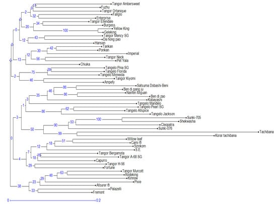 - Krueger, R.R.; Roose, M.L. Use of molecular markers in the management of citrus germplasm resources. J. Am. Soc. Hortic. Sci 2003, 128, 827–837. [Google Scholar] [CrossRef]