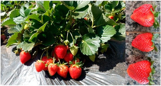 Strawberry is a small fruit widely cultivated around the world with high economic and nutritional properties [1,2]. Strawberries have a unique flavor and aroma, as well as high fiber, micronutrients, and ascorbic acid content. Furthermore, strawberries are a well-known source of antioxidants, a growing consumer trend due to their known health benefits [3,4].