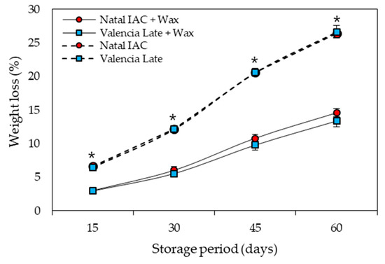- Malgarim, M.B.; Cantillano, R.F.F.; Treptow, R.O. Armazenamento refrigerado de laranjas cv. Navelina em diferentes concentrações de cera à base de carnaúba. Acta Sci. Agron. 2007, 29, 99–105. [Google Scholar] [CrossRef]