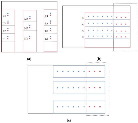 The cultivation area of the plant factory covers the seedling stage and growth stage, and there are differences in the distance between the monitoring points in different areas and the surface height of the cultivation rack. The numbering of cultivation racks and the positions of monitoring points are shown in Figure 3. The monitoring point in the seedling area is positioned 10 cm above the height of the cultivation rack, while the monitoring point in the crop cultivation area during the growth stage is located 20 cm above the height of the cultivation rack.