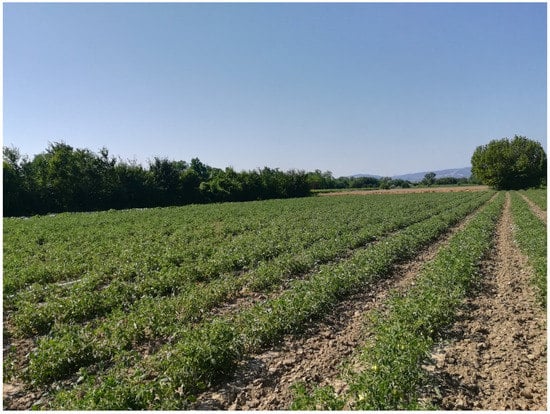 The tomato (Solanum lycopersicum L.) is an important horticultural crop cultivated for both the fresh and processing markets []. Italy is the leading country in Europe in tomato production with a production of ~5.2 million tons of tomatoes, of which 4.8 tons are used by processing industries []. In Italy, about 6% of the tomatoes processed by industries were produced following the guidelines of organic farming systems. Potential reasons for the limited share of organic tomato production are probably related to the lower yield obtained in organic farming in comparison with conventional farming and to challenges related to organic production, due, for example, to restrictions on the use of fertilizers and plant protection products [,].