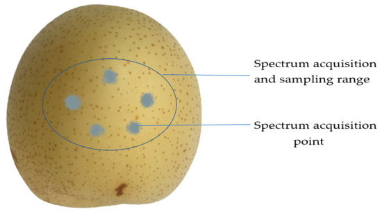 Schematic diagram of the surface spectral acquisition point of pear fruit.