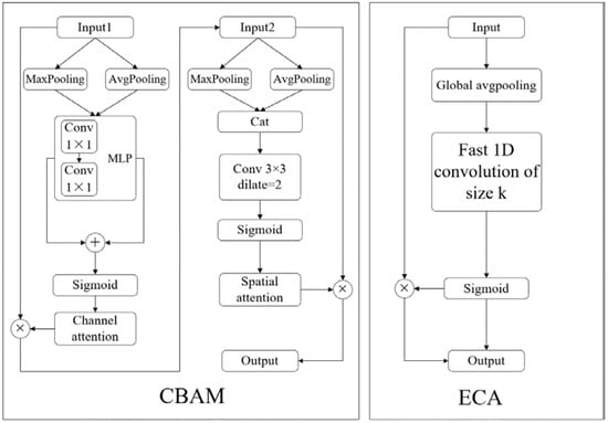 - Wang, Q.; Wu, B.; Zhu, P.; Li, P.; Zuo, W.; Hu, Q. ECA-net: Efficient channel attention for deep convolutional neural networks. In Proceedings of the 2020 IEEE/CVF Conference on Computer Vision and Pattern Recognition (CVPR), Seattle, WA, USA, 13–19 June 2022; IEEE: Washington, DC, USA, 2022; pp. 11531–11539. [Google Scholar]