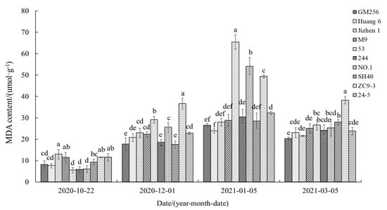 APA StyleJing, J., Liu, M., Yin, B., Liang, B., Li, Z., Zhang, X., Xu, J., & Zhou, S. (2023). Effects of 10 Dwarfing Interstocks on Cold Resistance of ‘Tianhong 2’ Apple. Horticulturae, 9(7), 827. https://doi.org/10.3390/horticulturae9070827