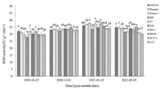 3.2.2. Change of Superoxide Dismutase (SOD) Activity