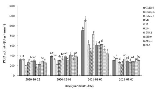 3.2.3. Change of Peroxide Dismutase (POD) Activity