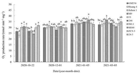 3.2.4. Change of Superoxide Anion (O2−) Production Rate