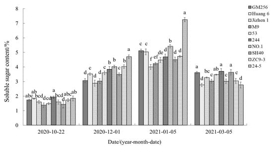 - Lee, J.; Yu, D.; Lee, J.; Kim, S.; Lee, H. Comparison of mid-Winter cold-hardiness and soluble sugars contents in the shoots of 21 highbush blueberry (Vaccinium corymbosum) cultivars. J. Hortic. Sci. Biotechnol. 2013, 88, 727–734. [Google Scholar] [CrossRef]