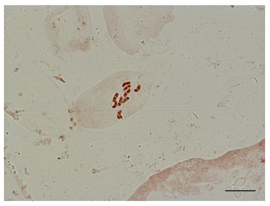 Metaphase in shoot apical meristem of haploid sugar beet regenerant plants (2n = x = 9), obtained in an unpollinated ovule culture in vitro. Scale bar = 10 µm.