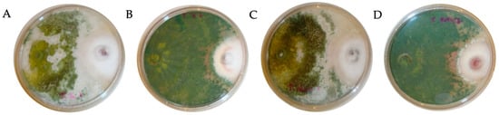 - Gonzalez, M.F.; Magdama, F.; Galarza, L.; Sosa, D.; Romero, C. Evaluation of the sensitivity and synergistic effect of Trichoderma reesei and Mancozeb to inhibit under in vitro conditions the growth of Fusarium oxysporum. Commun. Integr. Biol. 2020, 13, 160–169. [Google Scholar] [CrossRef]