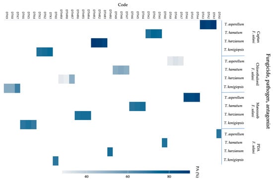 - Suárez, C.; Fernández, R.; Valero, N.; Gámez, R.; Páez, A. Antagonismo in vitro de Trichoderma harzianum Rifai sobre Fusarium solani (Mart.) Sacc., asociado a la marchitezen maracuyá. Rev. Colomb. Biotecnol. 2008, 2, 35–43. [Google Scholar] [CrossRef]