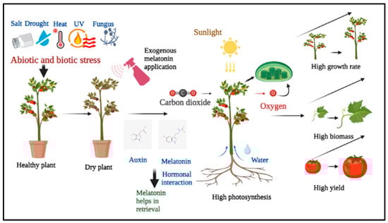 7]. Recent studies have narrated that the exogenous treatment of melatonin can improve stress tolerance, delay senescence, and promote growth in horticultural crops [