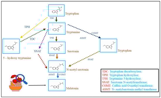 - Badria, F.A. Melatonin, Serotonin, and Tryptamine in Some Egyptian Food and Medicinal Plants. J. Med. Food 2002, 5, 153–157. [Google Scholar] [CrossRef]