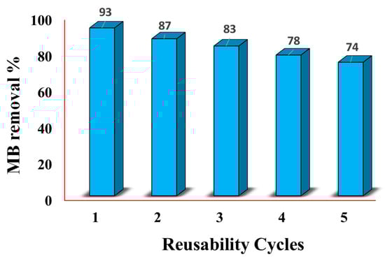 Reusability evaluation of ANZ/TC/MNPs for MB after five regeneration cycles.