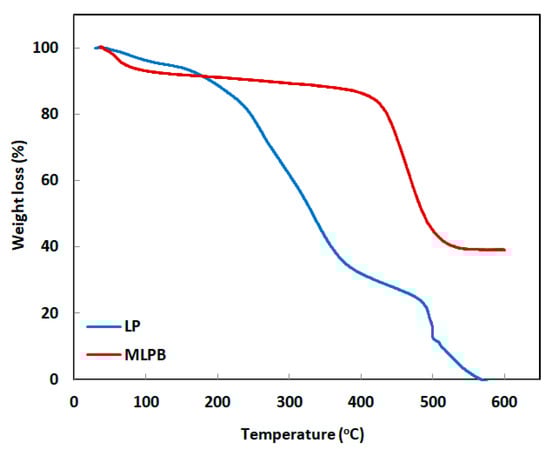 TGA curves of LP and MLPB.