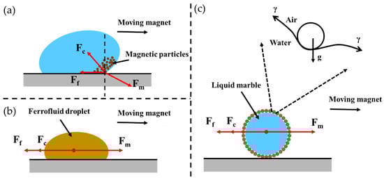 - Zhu, G.P.; Wang, Q.Y.; Ma, Z.K.; Wu, S.H.; Guo, Y.P. Droplet Manipulation under a Magnetic Field: A Review. Biosensors 2022, 12, 156. [Google Scholar] [CrossRef] [PubMed]